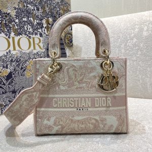 Christian Dior Medium Lady D-Lite Bag Blue Toile de Jouy Reverse Embroidery, Blue, For Women Women's Handbags, Crossbody Bags, 24cm CD M0565ORGO_M928