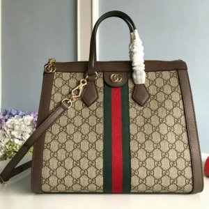 Gucci Ophidia GG Medium Tote Bag Beige/Ebony GG Supreme Canvas With Brown For Women 13in/33cm GG 524537 K05NB 8745