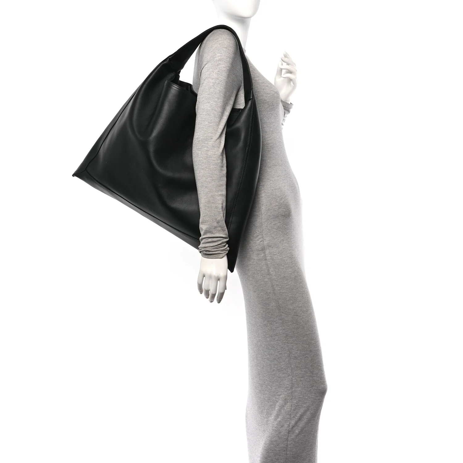 BOTTEGA VENETA Silky Calfskin Large Hop in Black. This is a beautiful hobo, crafted of smooth calfskin leather in black. It opens to an interior of smooth black leather with a zip pocket.