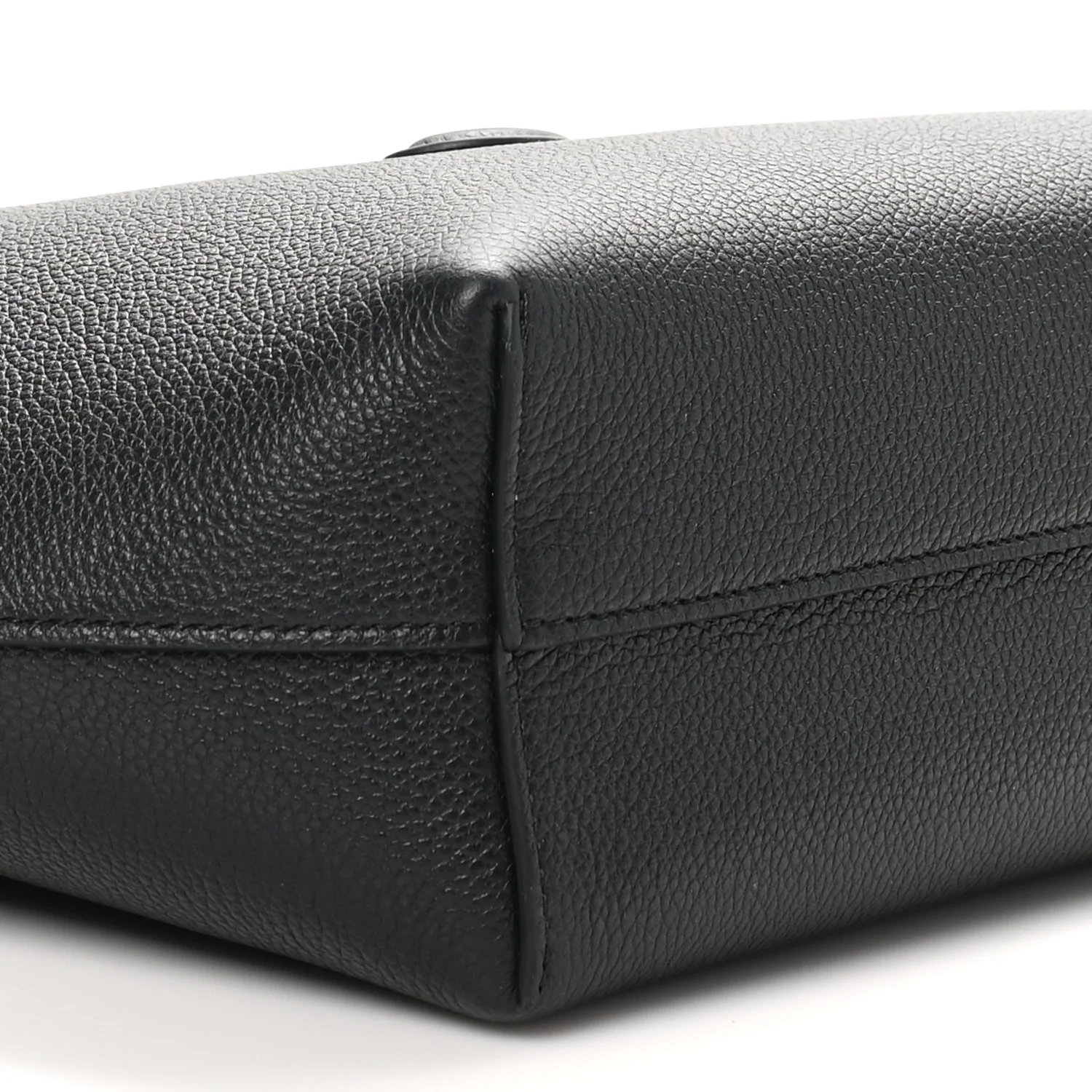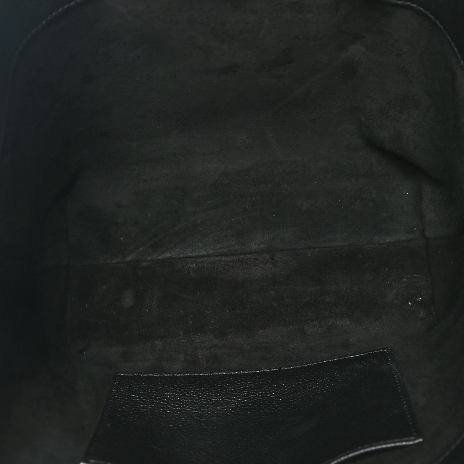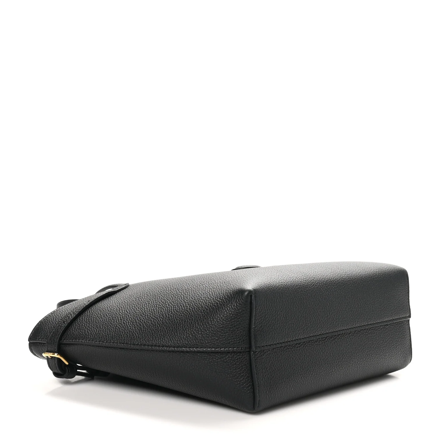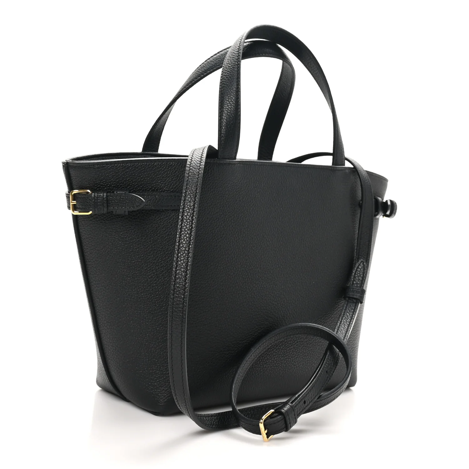 CELINE Grained Calfskin Triomphe Mini Cabas Anais in Black. This tote is crafted with black grained calfskin leather. It features leather strap handles, an optional shoulder strap, and an open suede leather interior with a patch pocket.