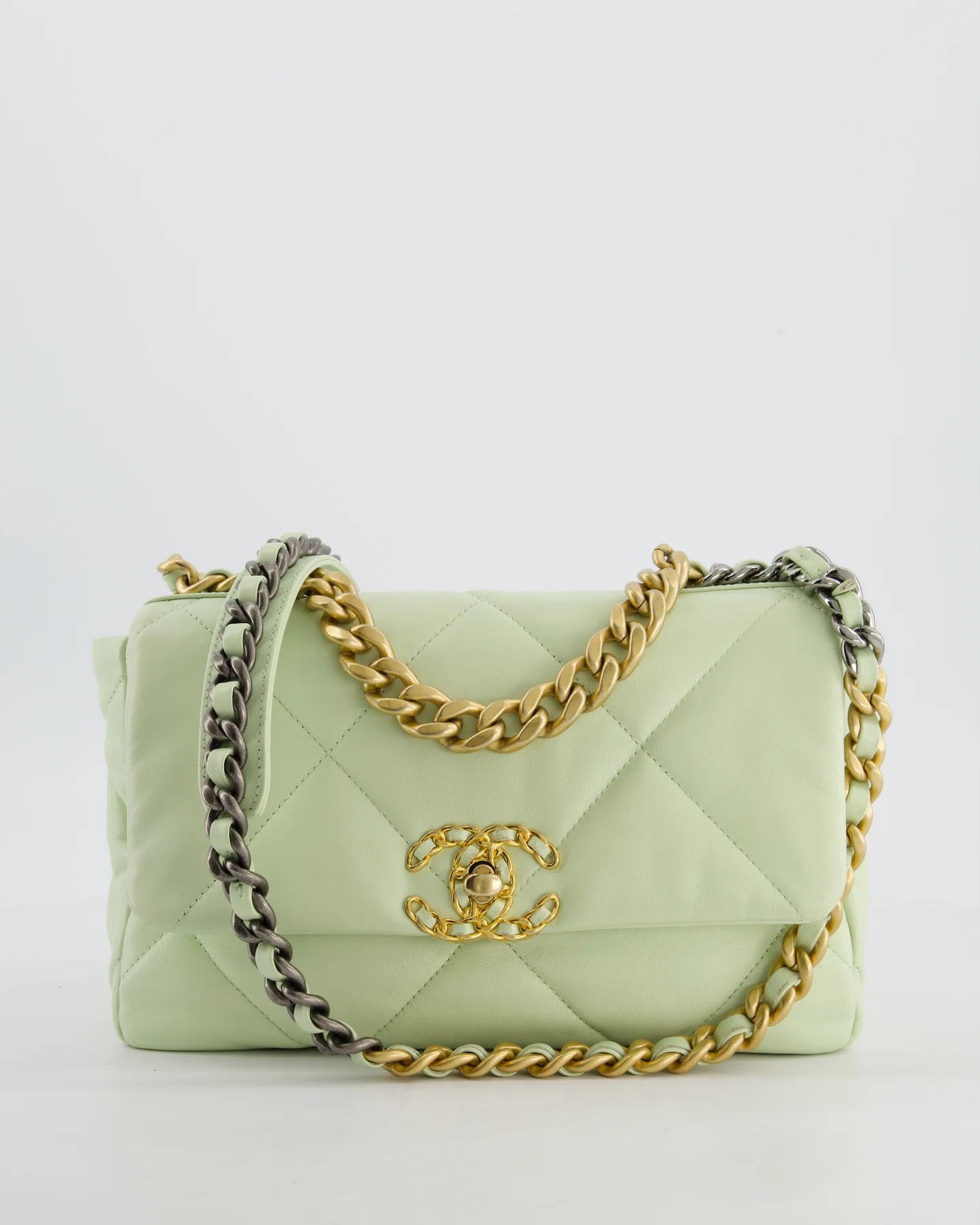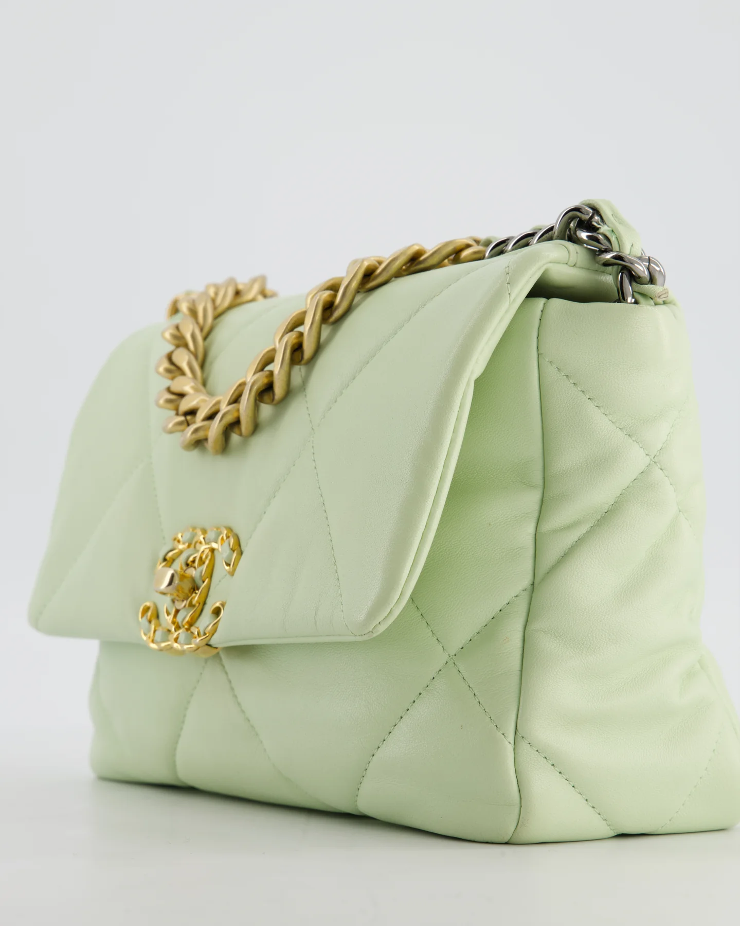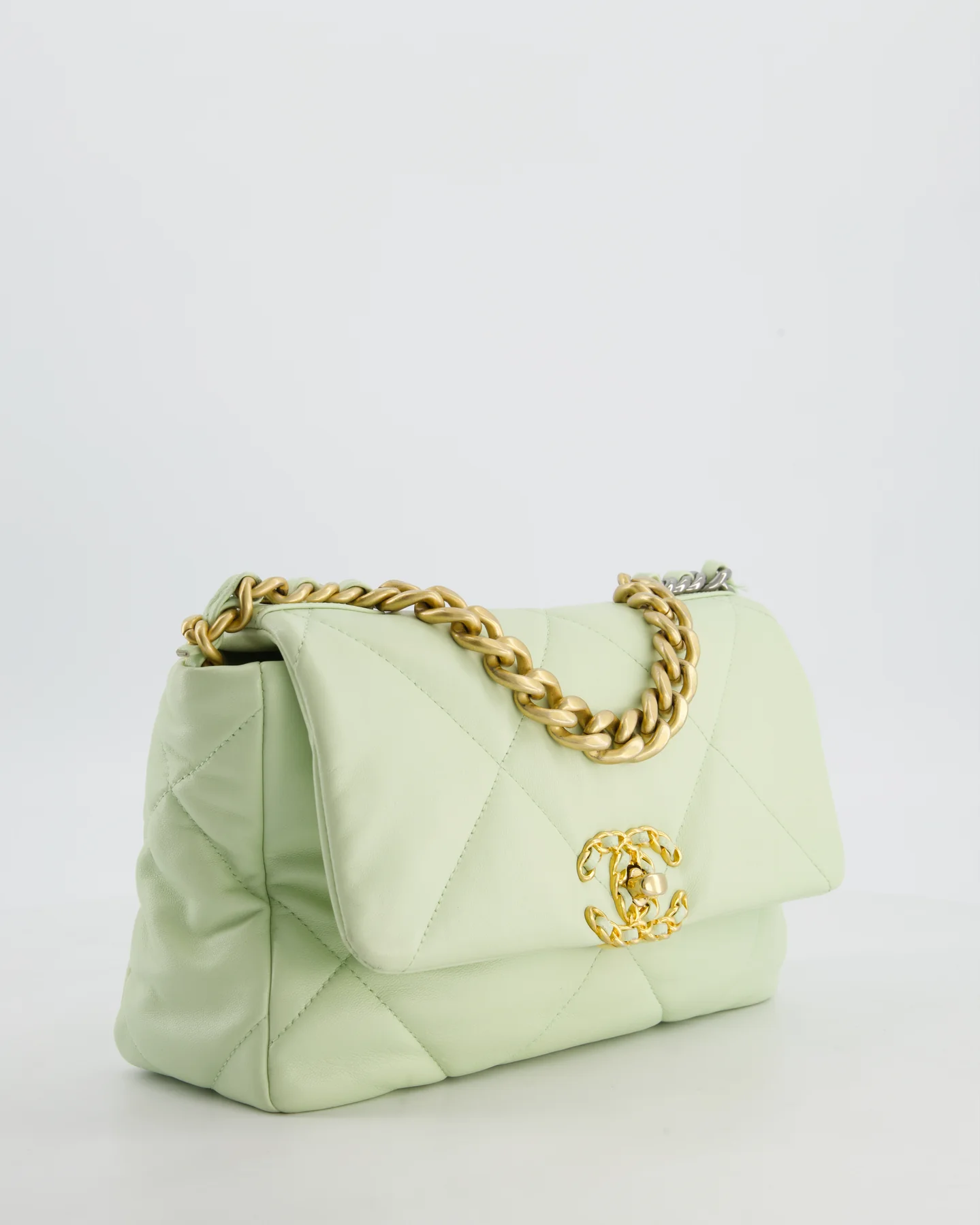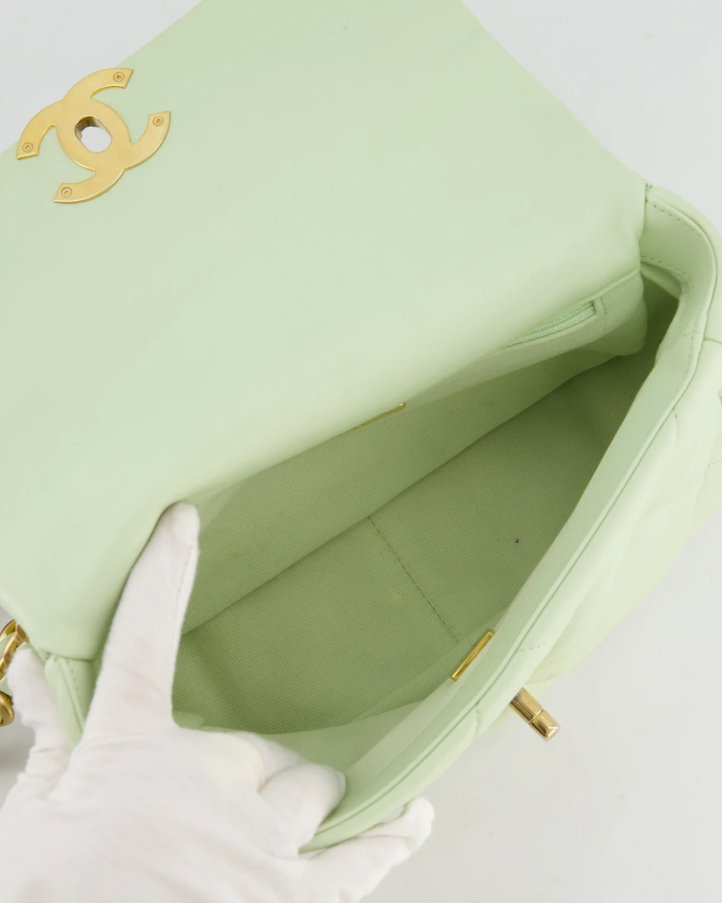 Chanel 19 Small Flap Bag in Pastel Pistachio Goatskin Leather with Tricolour Hardware