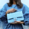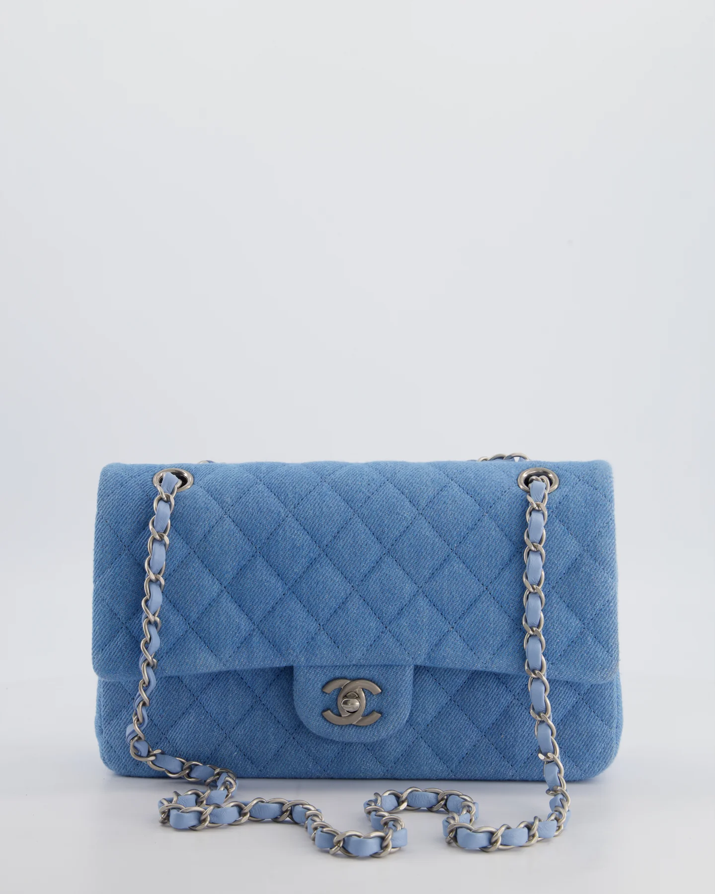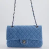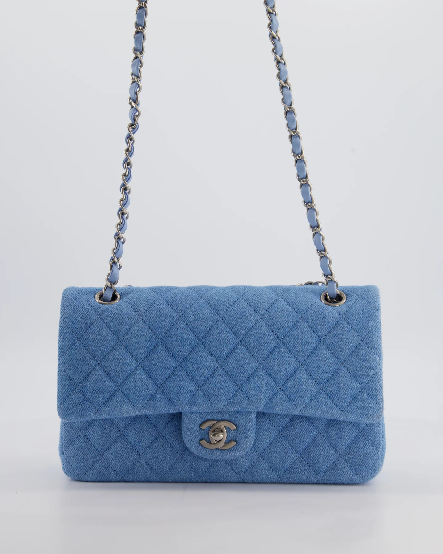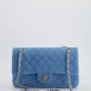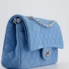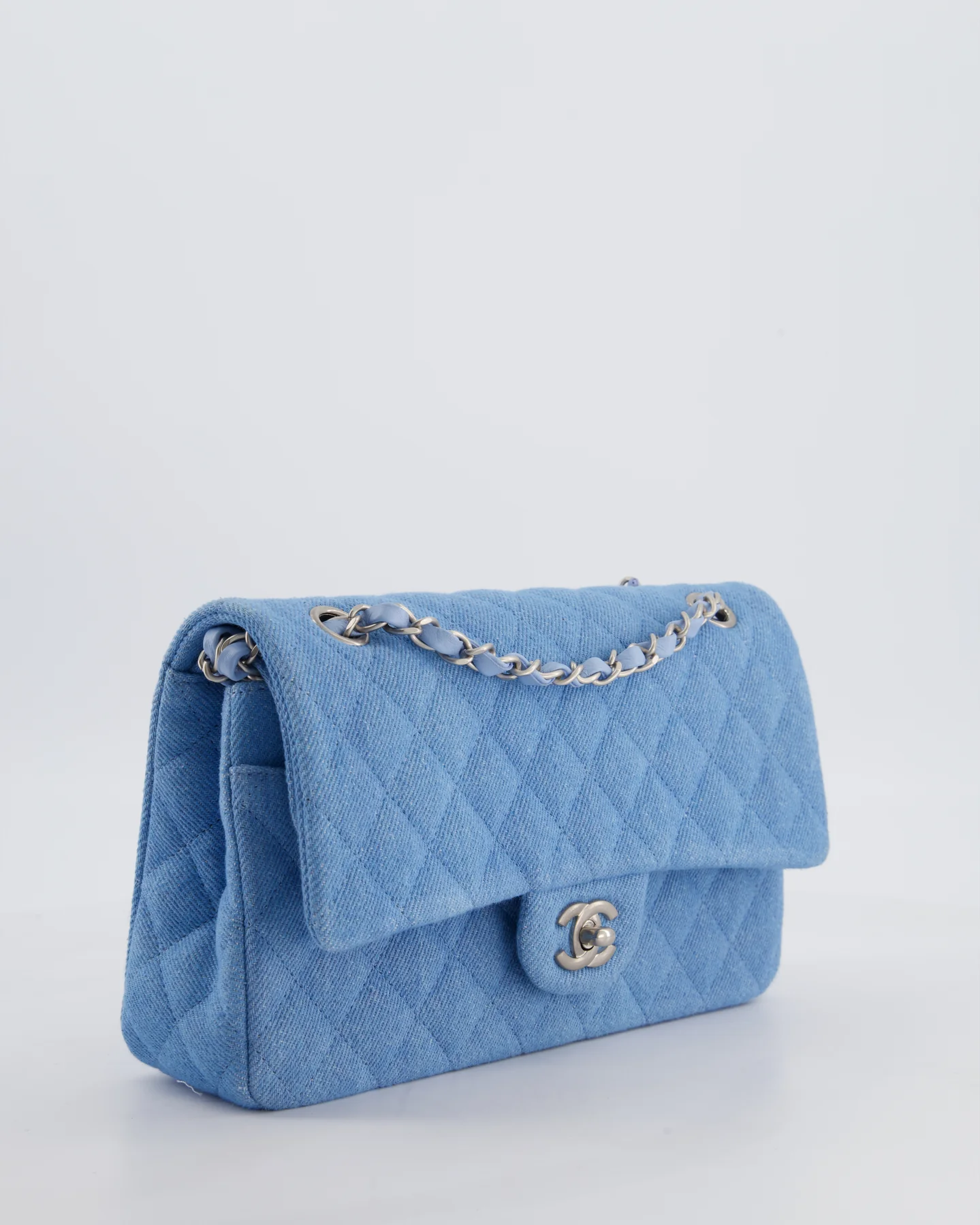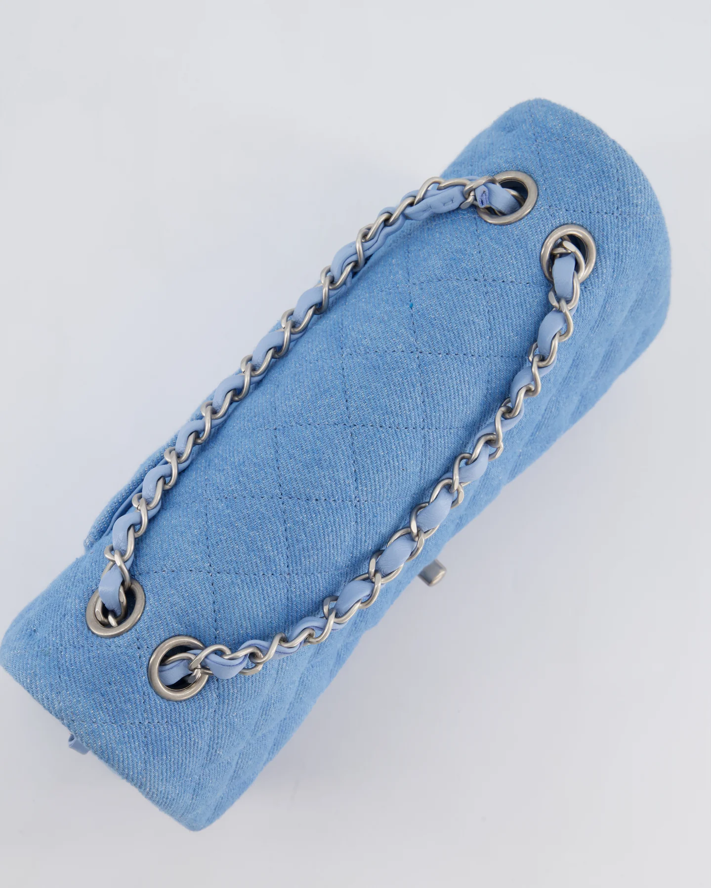 Chanel 25C Medium Double Flap Bag in Light Blue Denim with Brushed Silver Hardware
