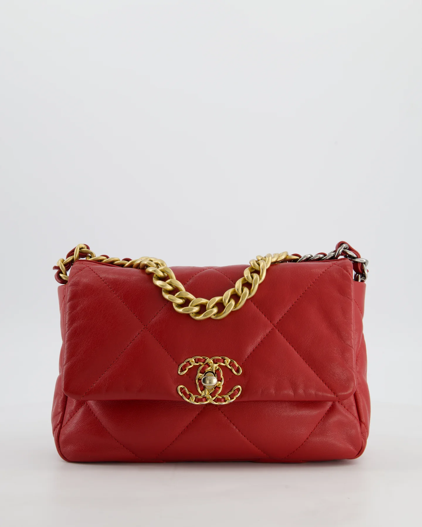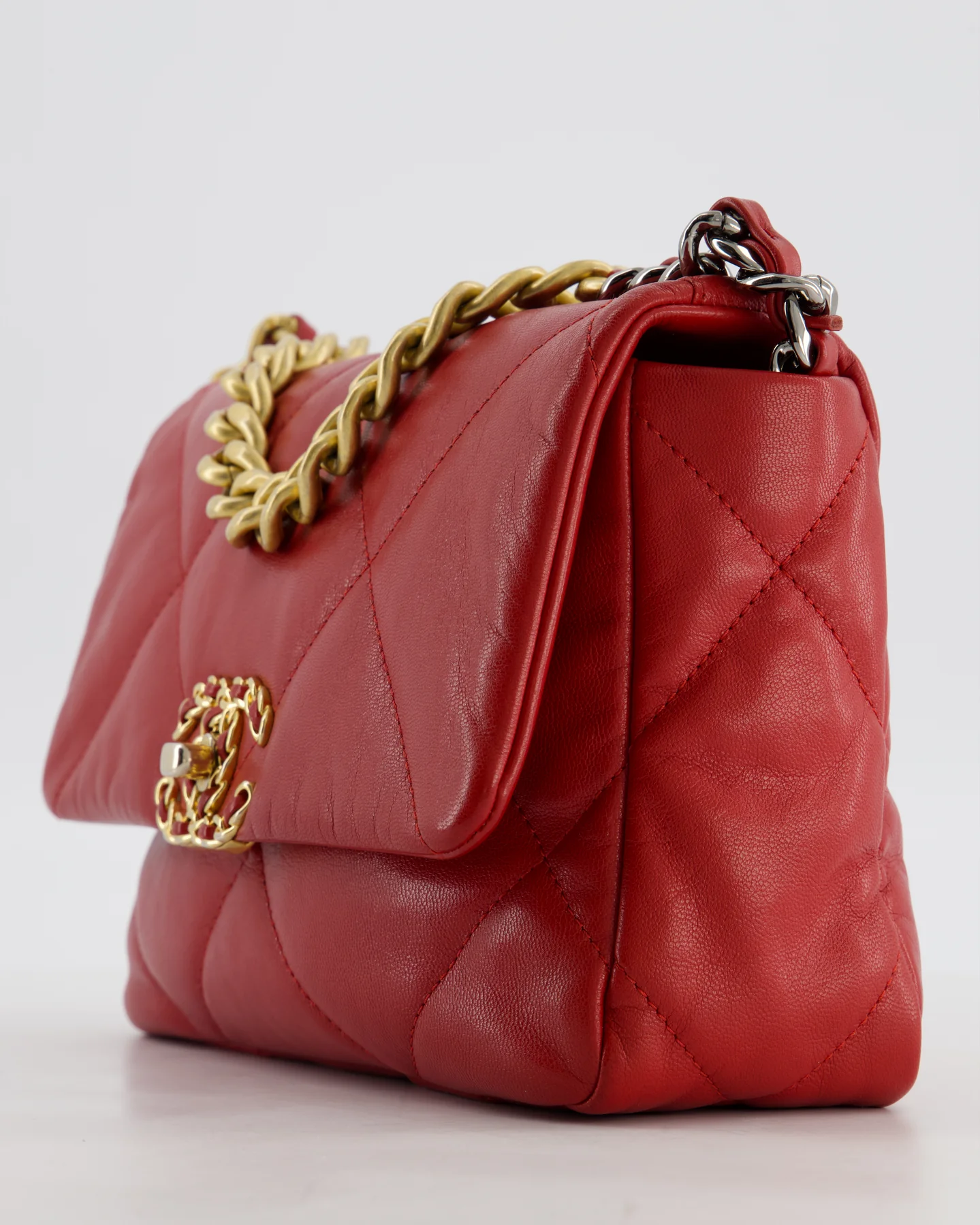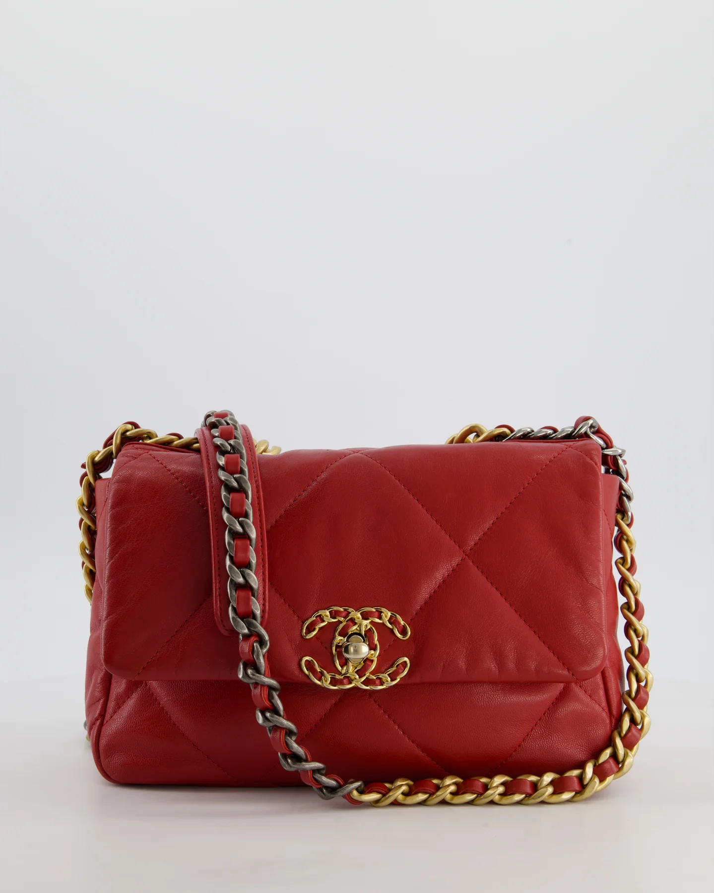Chanel 19 Small Flap Bag in Deep Red Goatskin Leather with Mixed Hardware