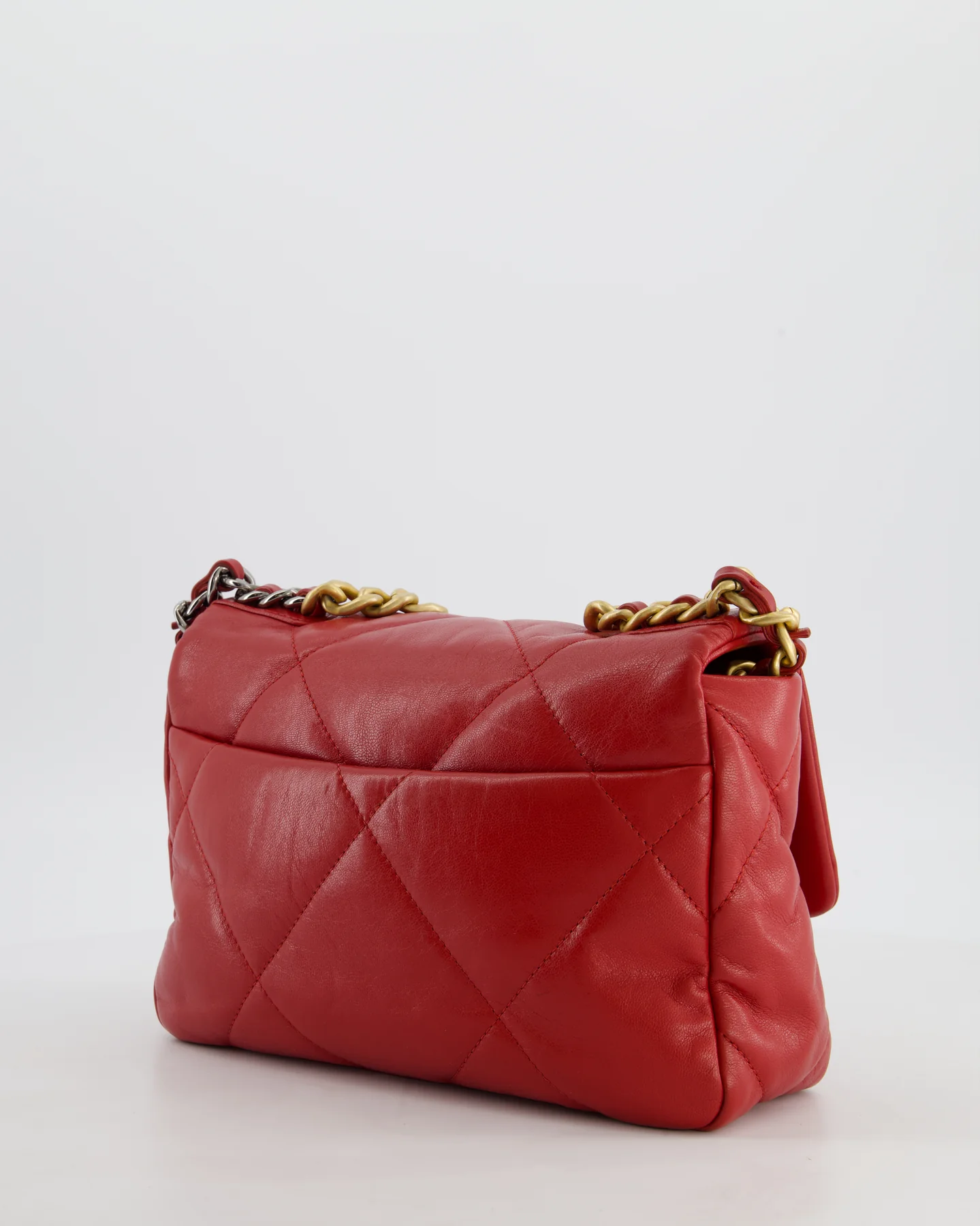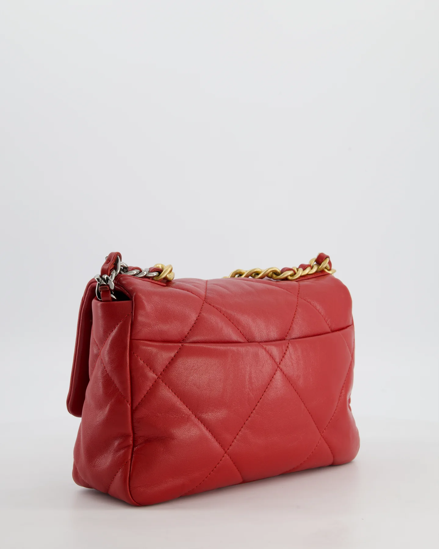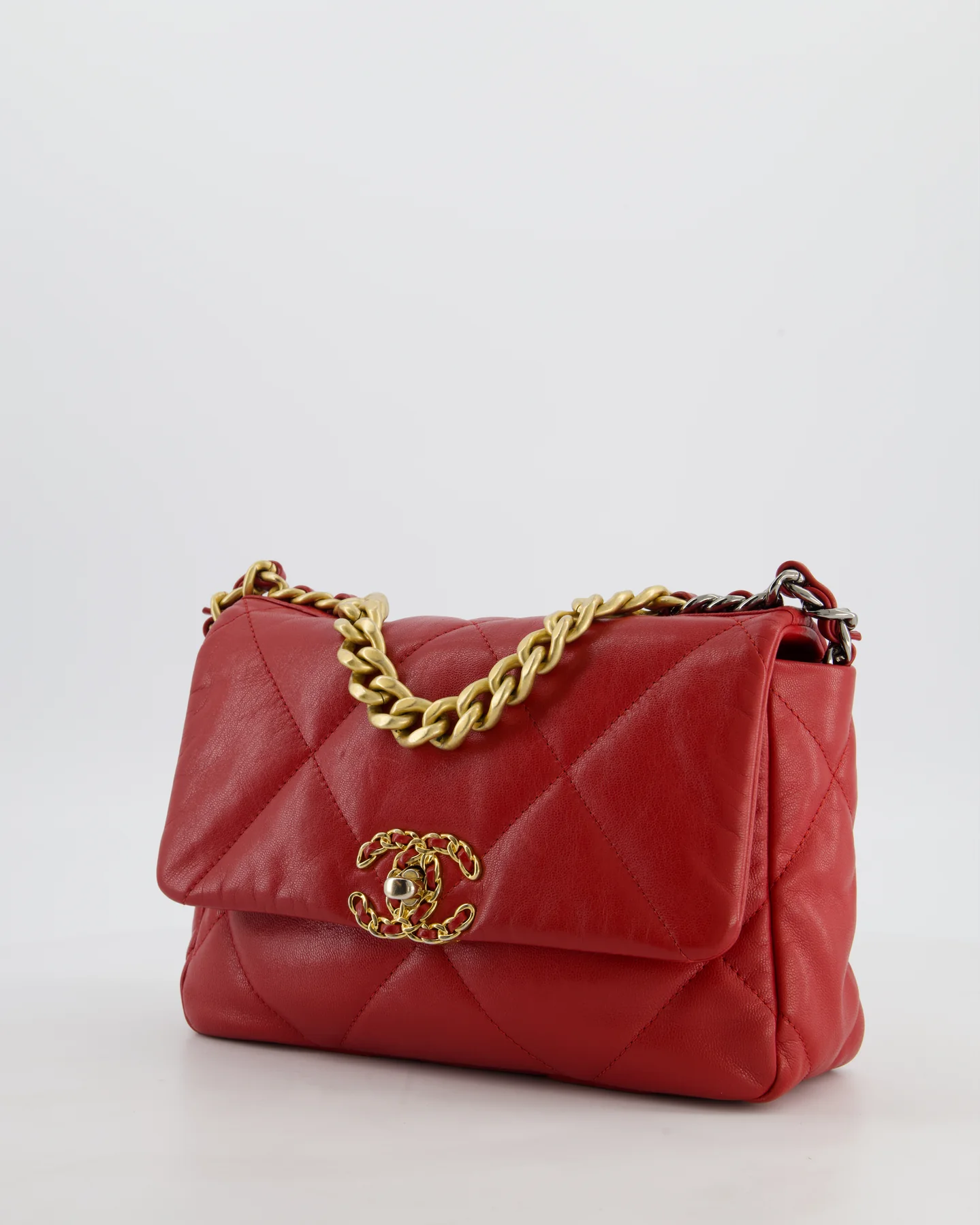 Chanel 19 Small Flap Bag in Deep Red Goatskin Leather with Mixed Hardware