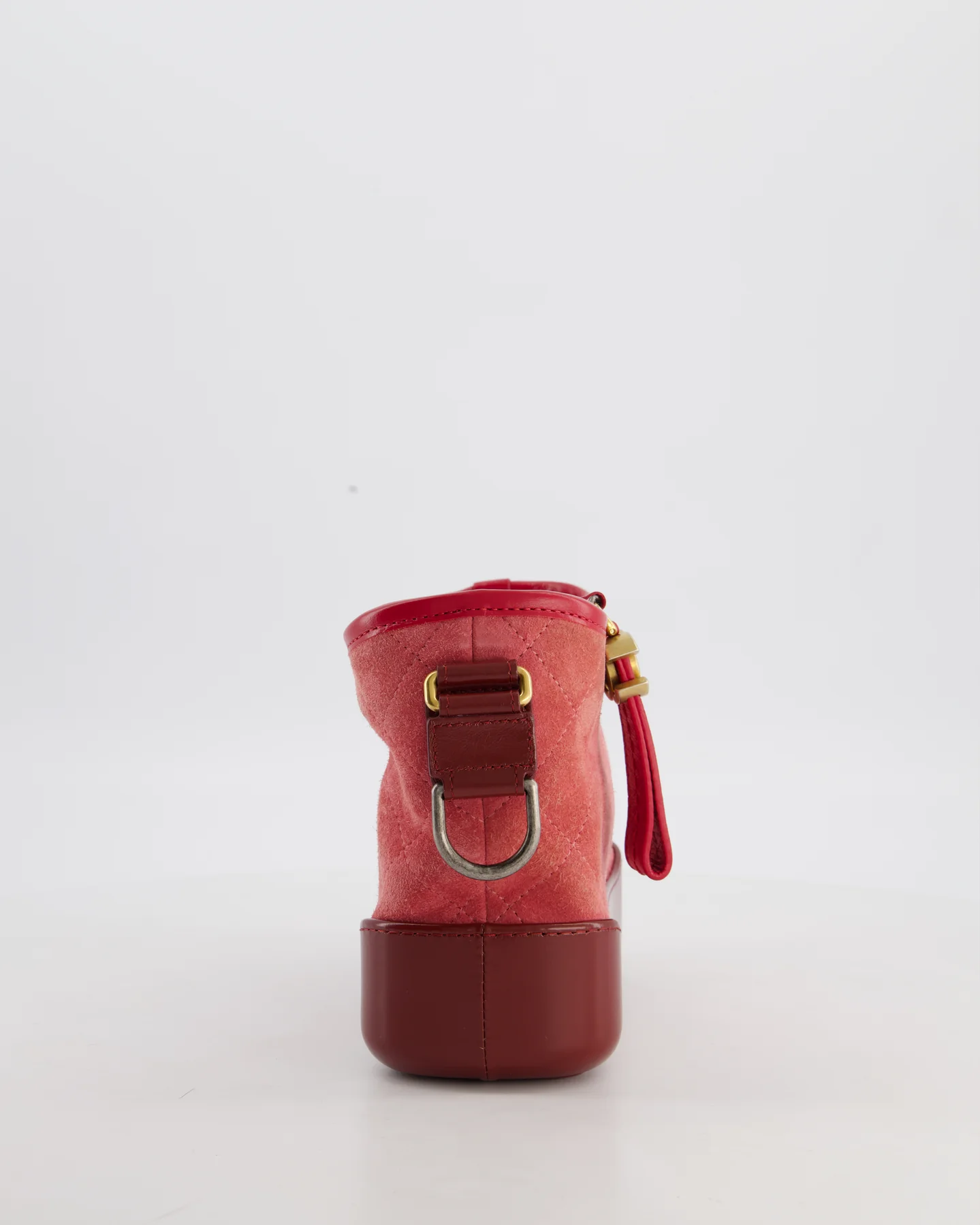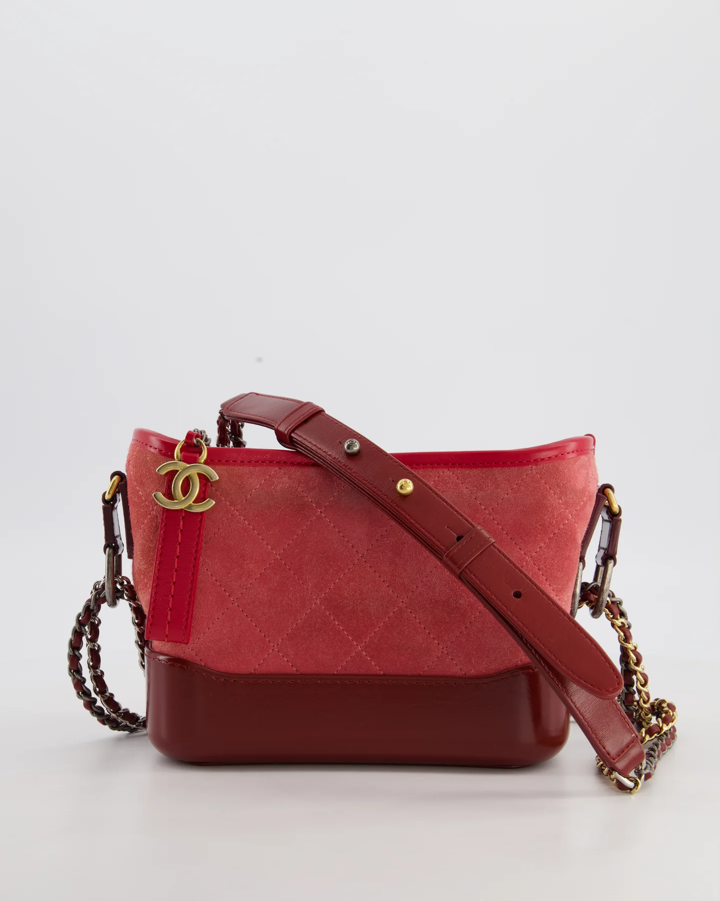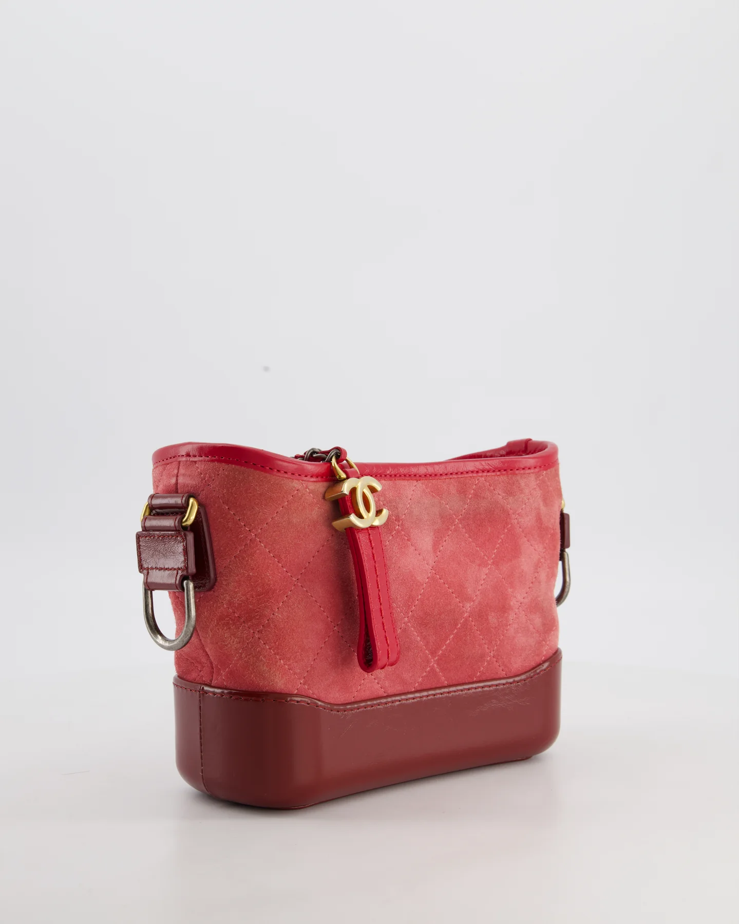Chanel Chanel Red & Burgundy Small Gabrielle Bag in Suede & Lambskin Leather with Mixed Hardware