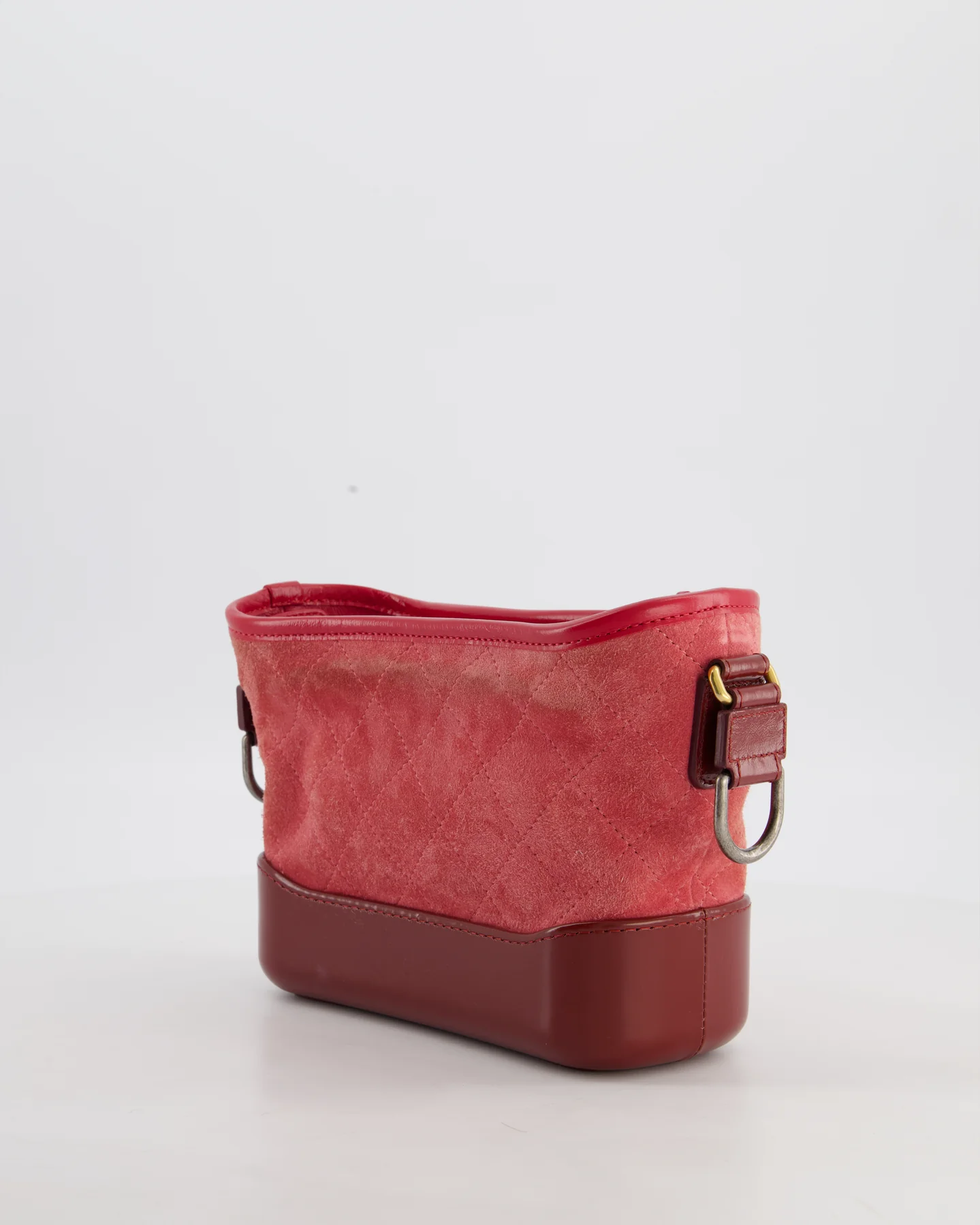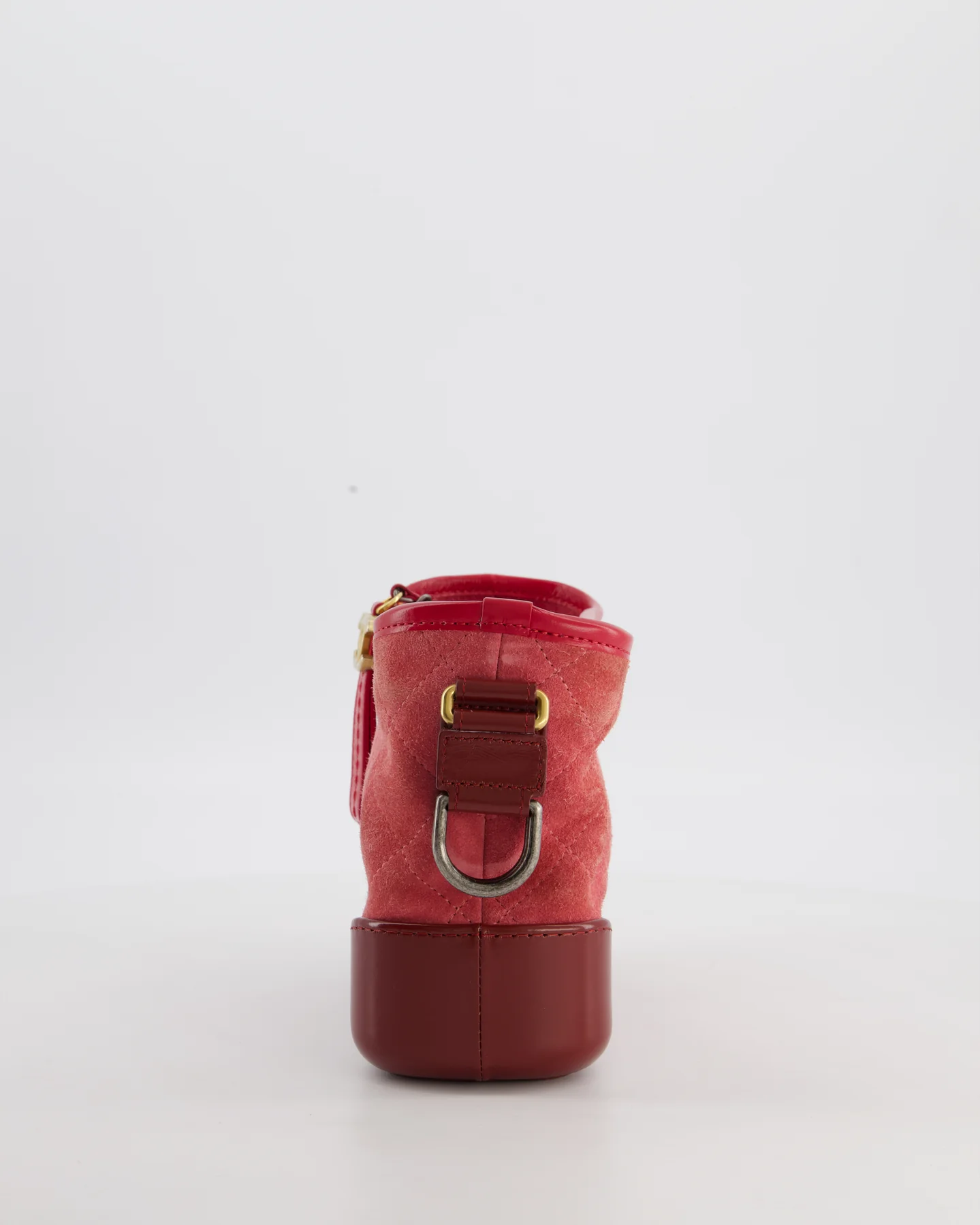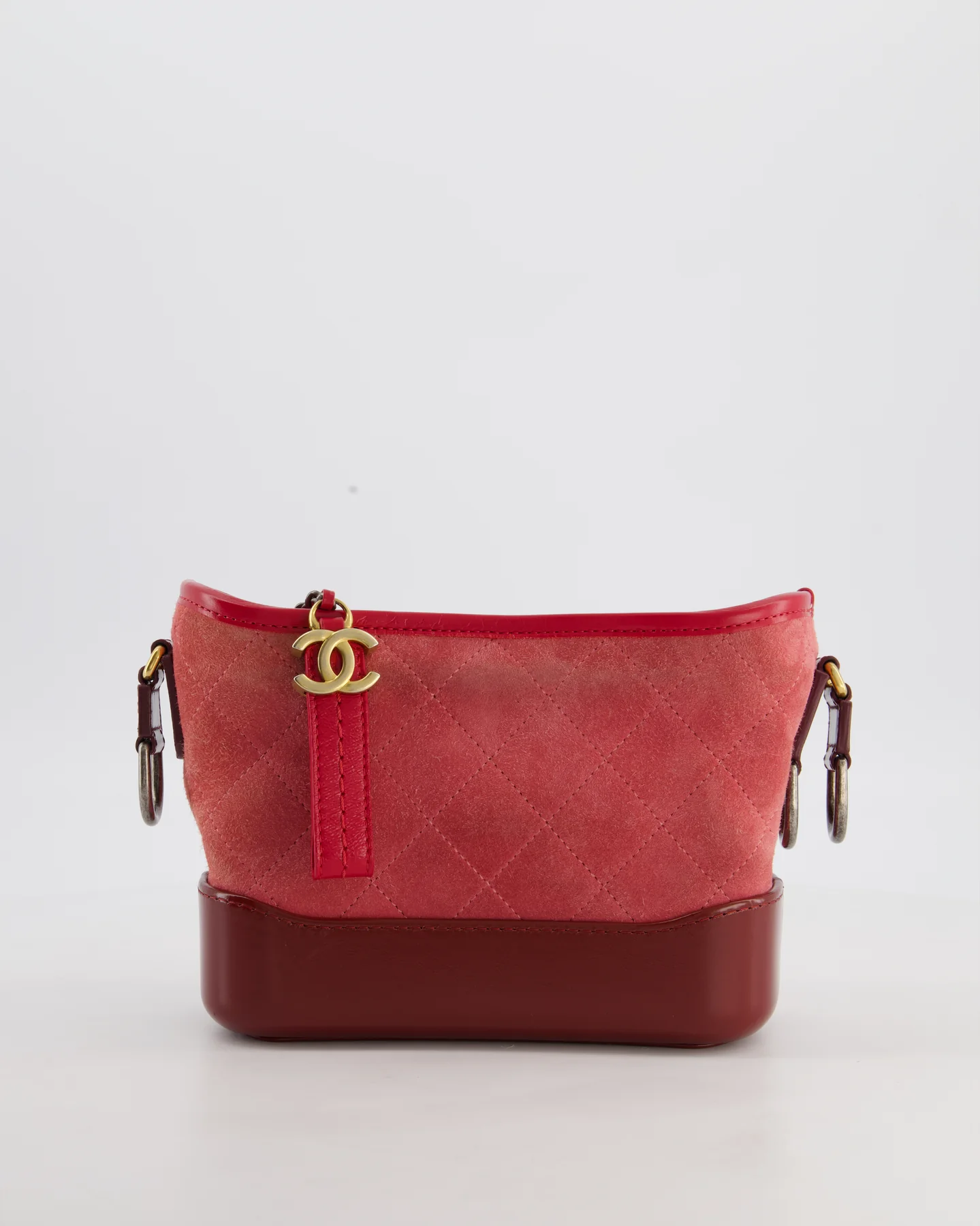 Chanel Chanel Red & Burgundy Small Gabrielle Bag in Suede & Lambskin Leather with Mixed Hardware