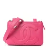 Chanel Lambskin Camellia Embossed Wallet on Chain WOC Pink