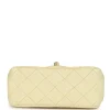 The interior is lined in light yellow leather and features a small zip pocket with Chanel pull and slip pocket underneath on the rear wall.