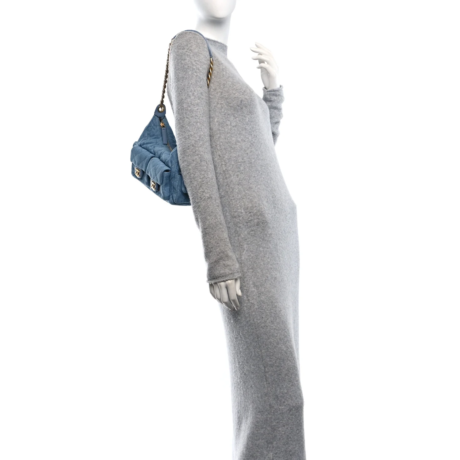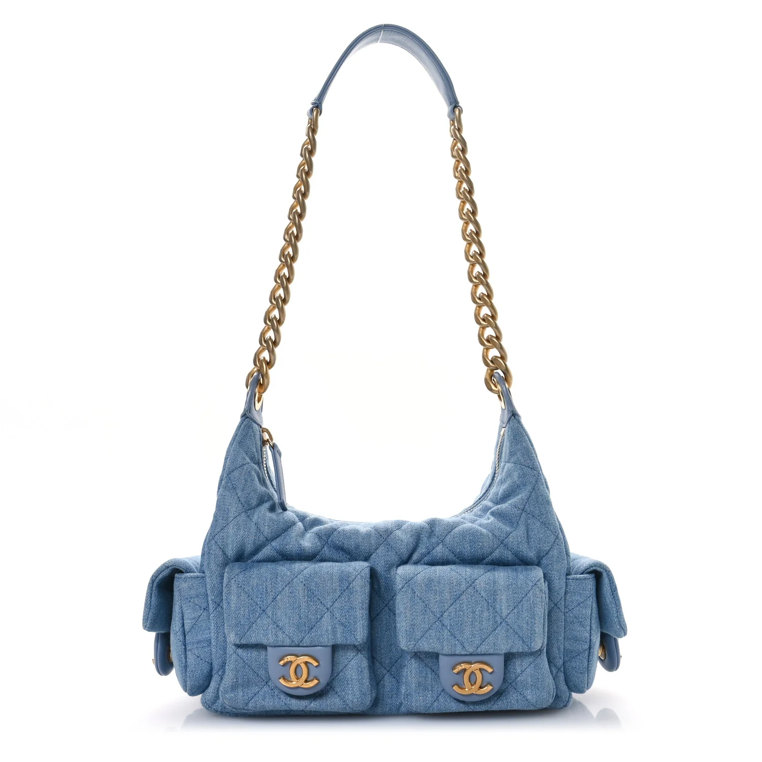Chanel Washed Denim Quilted Cargo Large Hobo Light Blue