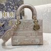 The Lady D-Lite bag combines classic elegance with House modernity. The style is fully embroidered with the Rose des Vents Toile de Jouy motif. A ‘CHRISTIAN DIOR PARIS’ signature adorns the front, while thick ‘D.I.O.R.’ charms in pale gold-finish metal further enhance and highlight the silhouette. Featuring a wide, reversible and removable embroidered shoulder strap, the medium Lady D-Lite bag can be carried by hand or worn crossbody.