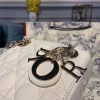 The Lady Dior bag epitomizes Dior’s vision of elegance and beauty. Sleek and refined, the creation is timeless. The bag showcases a graphic interpretation of the House’s iconic motif. The tonal matte metal ‘D.I.O.R.’ charms offer elegant allure. Featuring a removable chain shoulder strap, the miniature Lady Dior bag can be carried by hand or worn crossbody.