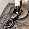The Lady Dior handbag epitomizes the House’s vision of elegance and beauty. Refined and sleek, this creation is timeless. Covered with Cannage stitching, it boasts an instantly recognizable quilted texture. The pale matte-finish metal ‘D.I.O.R.’ charms embellish and illuminate its silhouette. Featuring a removable chain shoulder strap, the miniature Lady Dior bag can be carried by hand or worn crossbody as an ideal evening wear companion.