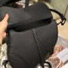 The iconic Saddle bag is reinvented once more by Maria Grazia Chiuri. Featuring a Saddle flap with a magnetic ‘D’ stirrup clasp, it boasts a ‘CD’ signature on each side of the handle. The black ultramatte style is embellished with tonal metal hardware. The Saddle bag may be carried by hand or worn over the shoulder and can be customized with different shoulder straps.