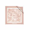 The Toile de Jouy Sauvage square scarf honors the hallmark House motif. Crafted in ivory and pink silk twill, the design has hand-rolled edges and is embellished with a contrasting ‘CHRISTIAN DIOR’ signature jacquard band. The scarf may be tied around the neck or head to complete a Dior look.