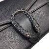 The Dionysus shoulder bag with the now defining tiger head closure-a unique detail referencing the Greek god Dionysus, who in myth is said to have crossed the river Tigris on a tiger sent to him by Zeus. The closure is further enhanced with black crystals. The sliding chain strap can be worn multiple ways, changing between a shoulder and a top handle bag. Made in textured, resistant