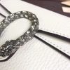 Made in resistant textured the structured Dionysus super mini bag is completed with a tiger head spur closure, enriched with crystal stones. Equipped with a key ring that can be used to attach this bag to a separate larger bag.