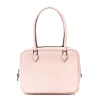 HERMES Chevre Mysore Mini Plume in Rose Darling. This simple, elegant tote is crafted of goatskin leather in light pink, with thin rolled leather handles, and polished palladium hardware. The zipper opens to a matching leather interior.