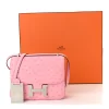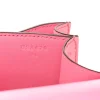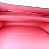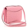 HERMES Ostrich Constance 18 in Rose Pourpre. This stylish shoulder bag is finely crafted of ostrich leather in pink. The bag features a long shoulder strap with silver palladium-plated hardware, including an H buckle at the flap. This opens to a partitioned smooth leather interior with a flat pocket.