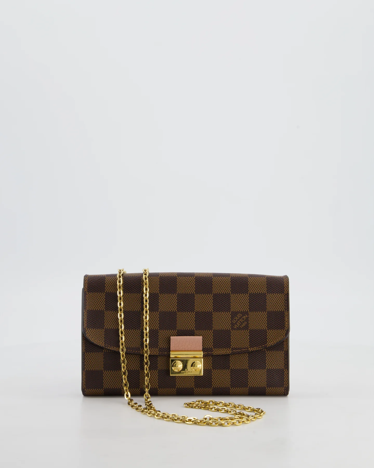 Louis Vuitton Brown Croisette Wallet on Chain in Damier Ebene Canvas with Gold Hardware