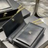 Cassandre bag with front flap with magnetic snap closure decorated with iconic ysl signature, featuring side gussets and encased key ring.