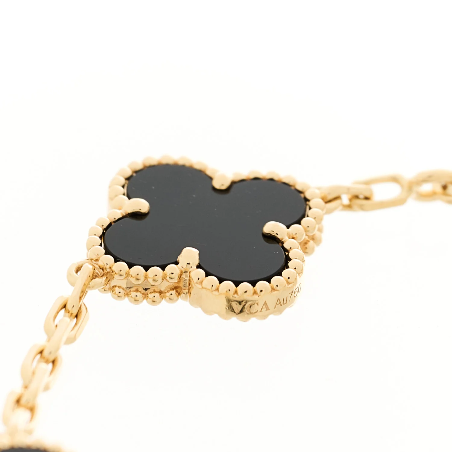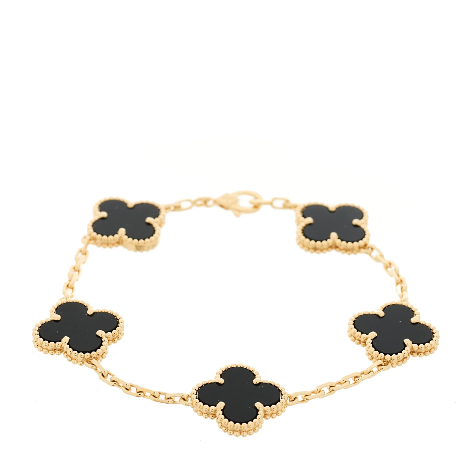 VAN CLEEF & ARPELS 18K Yellow Gold Black Onyx 5 Motifs Vintage Alhambra Bracelet